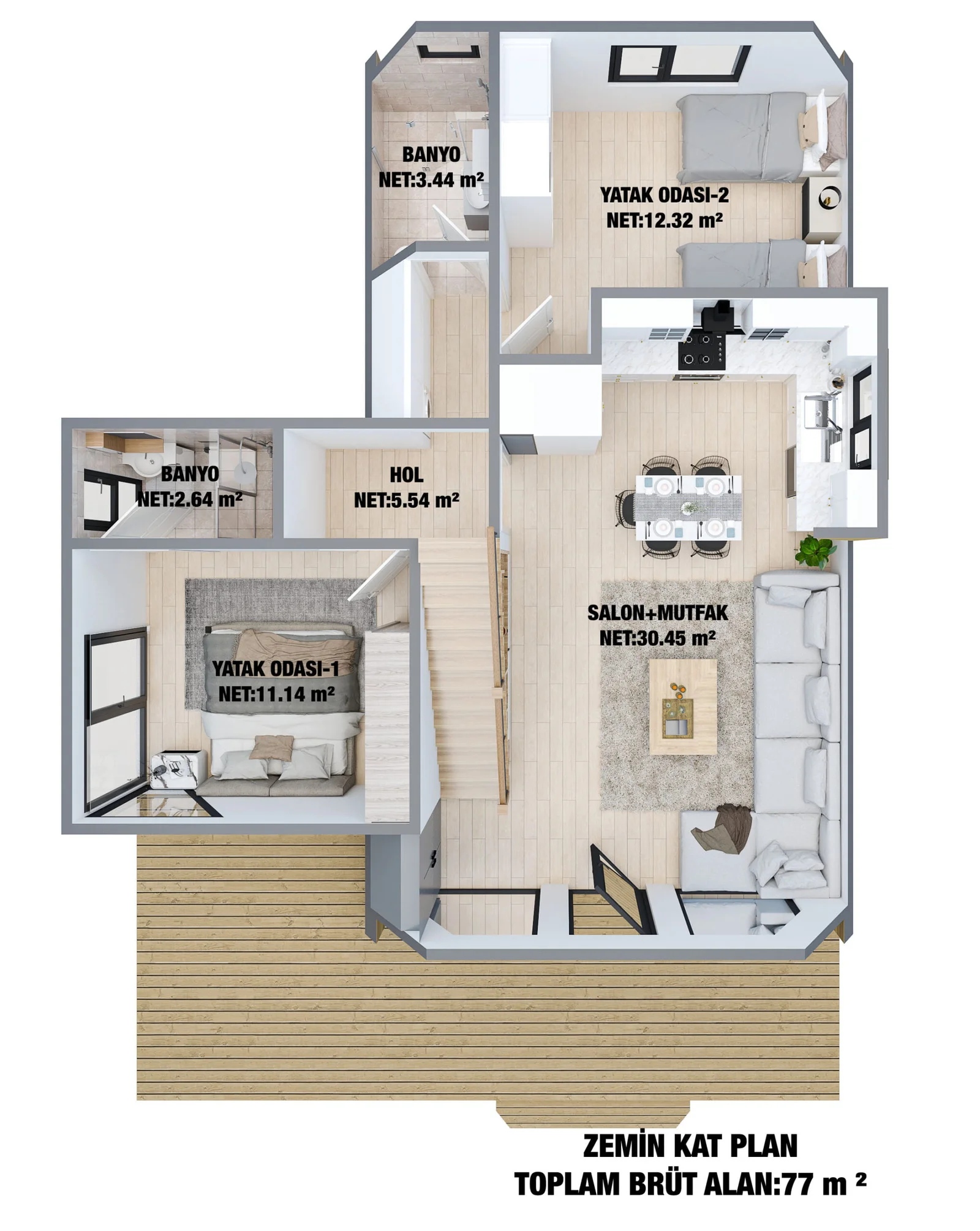 Çatı Katlı (Loft) Çelik Villa – 123m² (3+1)